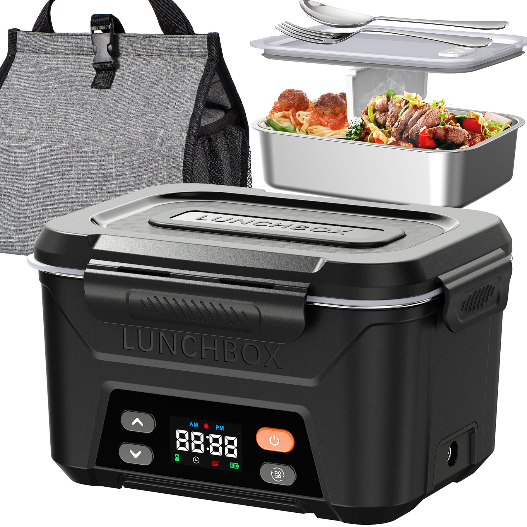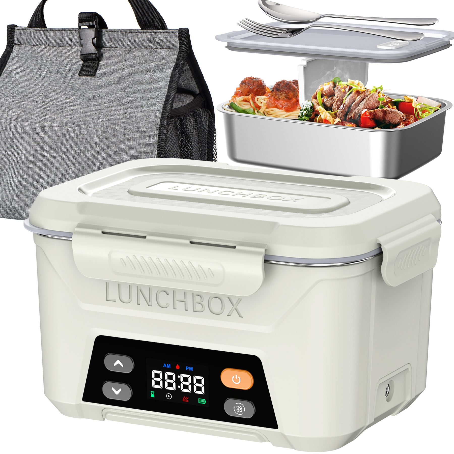 Heated Lunch Box Battery Powered with Automatic Heating, Cordless Heatable Lunchbox for Adults, 1.3L Portable Food Warmer with Insulated Carry Bag