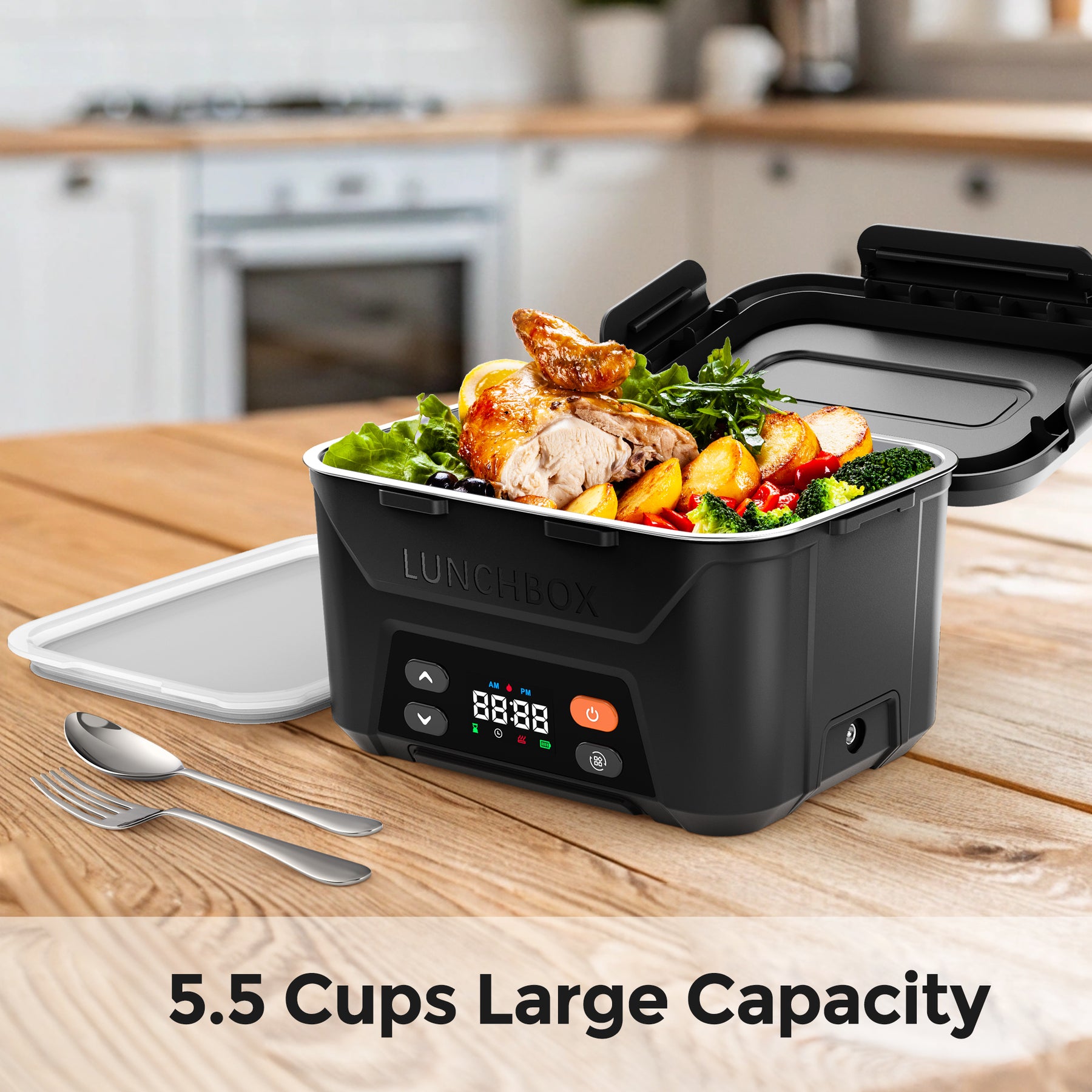 Featuring an innovative "Set Meal Time" function, it eliminates complicated countdown settings. Simply place the ingredients inside the night before, set the next day’s meal time (e.g., 12:00 PM), and the lunchbox will automatically start heating two hours in advance. Enjoy perfectly warmed food right on time—effortless and punctual.