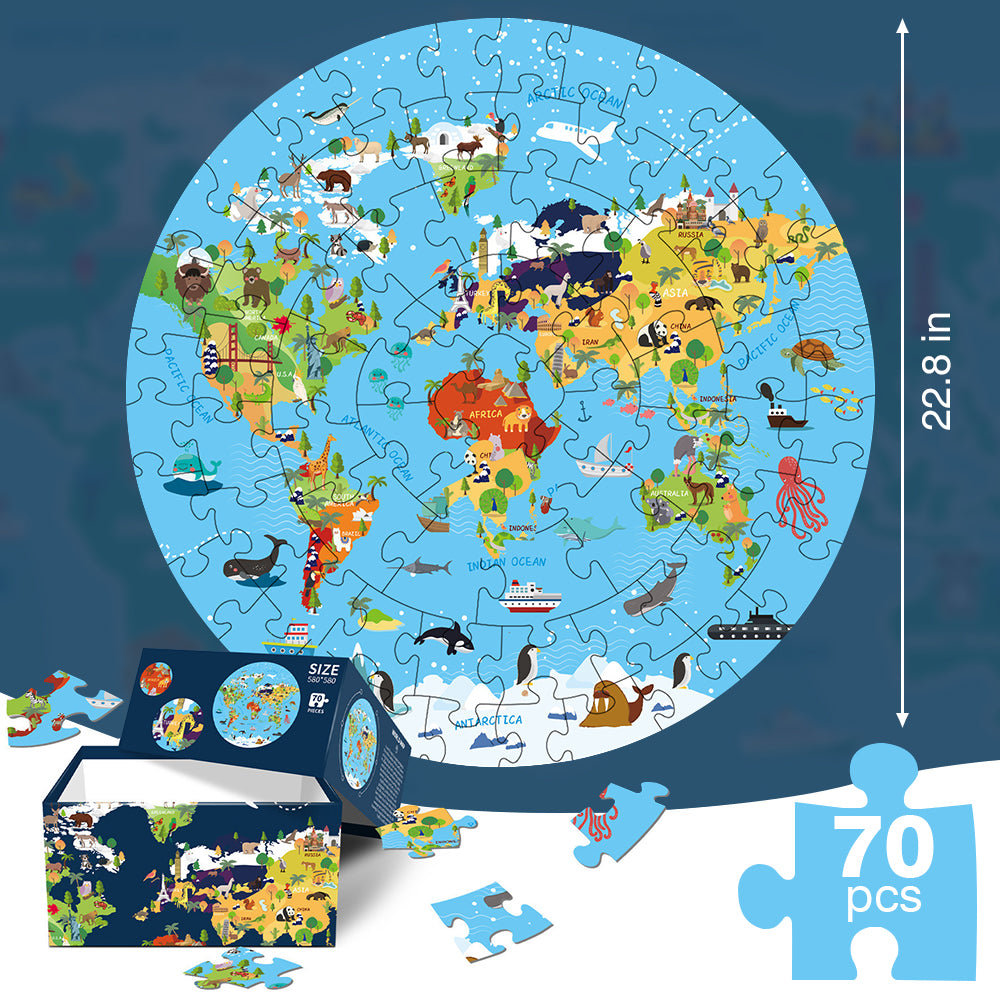 Giant Puzzle, Fostering Patience: This animal floor puzzle, with 70 pieces and measuring 22.8 x 22.8 inches (5858 cm), is large yet manageable, designed to cultivate children's patience and encourage them to complete challenges.