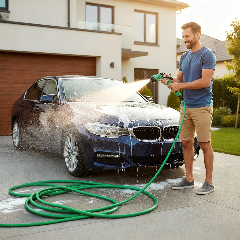 Versatile application: Ideal for a variety of garden tasks, from watering lawns and flower beds to washing cars and pets. The 50-foot hose is perfect for backyard irrigation systems, vegetable gardens, and general lawn care, providing a strong, consistent water flow without leaks.