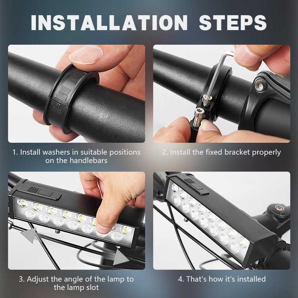 Multi-mode, waterproof, and practical: The bicycle light offers four switchable modes, including low beam and high beam, providing a wide illumination range. Its waterproof design protects against splashes from any angle, making it an excellent accessory for outdoor cycling.
