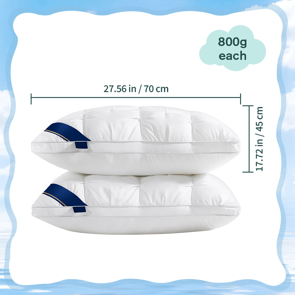 Premium Filling and Breathable Cover: Filled with premium down instead of microfiber, it's soft and provides moderate support, eliminating neck and shoulder pain. The hypoallergenic, skin-friendly polyester cover promotes airflow.