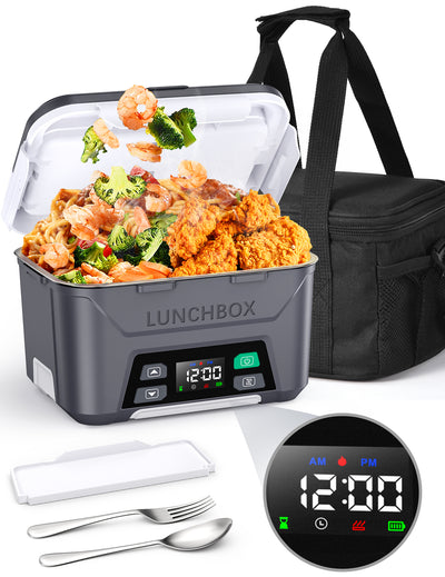 Cordless Electric Lunch Box, Heated Lunch Box Battery Powered with Automatic Scheduled Heating, 5.5 Cups Capacity, with Removable Tray Divider, Dishwasher Safe, for Hot Meals Anywhere