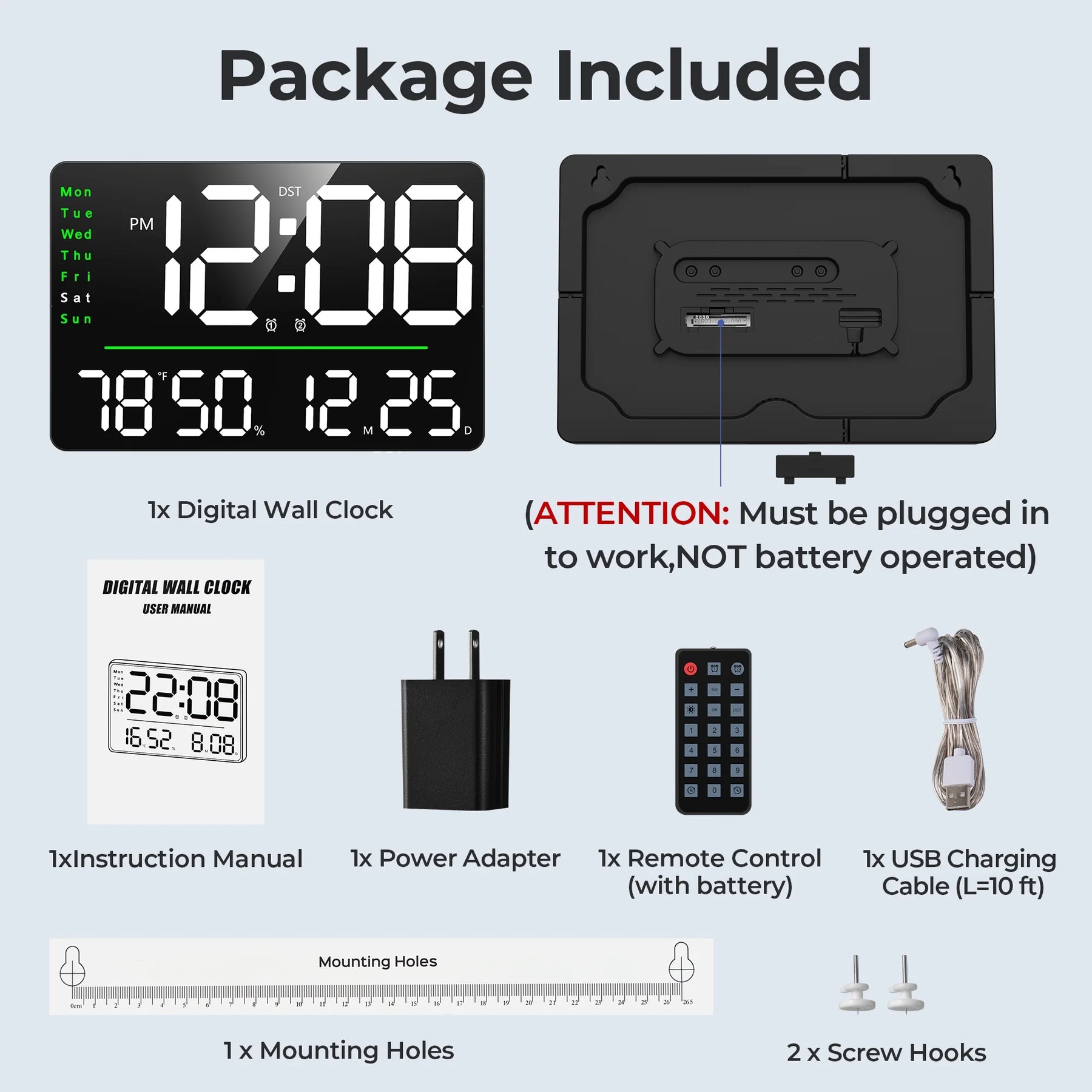 - Reliable Memory Function: Say goodbye to the panic of repeatedly setting your digital alarm clock after a power outage. Our digital wall clock's reliable memory function is like a friend who always remembers your birthday. Only 1*AAA battery are needed (not included in the package) and set it once, then it will never forget accurate time and your alarm settings! Please note: The digital wall clock is not battery powered. The battery is only used for backup function and the clock needs to be plugged in all the time.