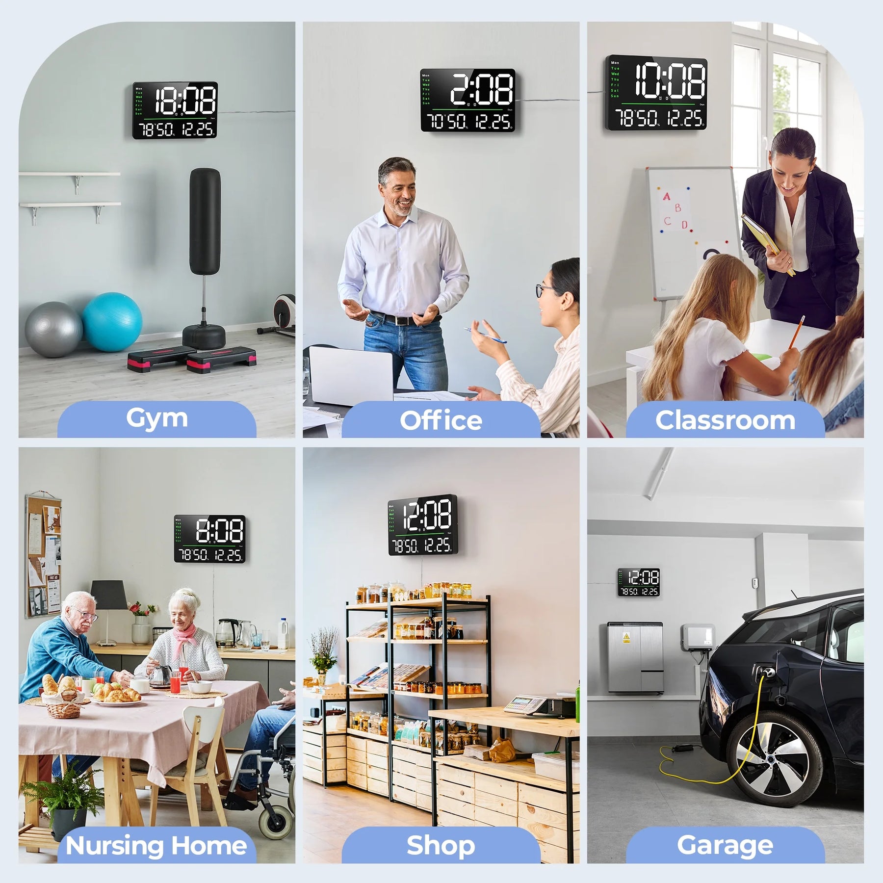 - Large Display and Jumbo Numbers: This large wall clock features an impressive display, ensuring that you can read the time from a distance, making it perfect for elderly users, seniors and ideal for various settings – from your cozy living room to bustling offices and even the quiet corners of your warehouse or garage.