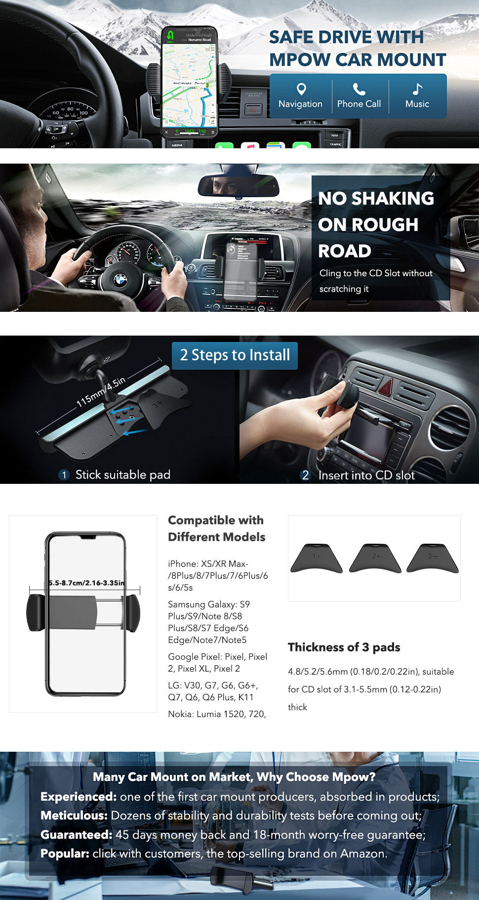 Mpow CD Slot Car Mount Phone Holder