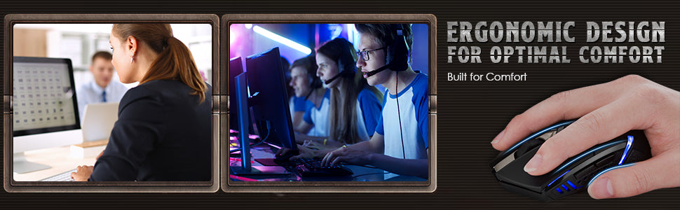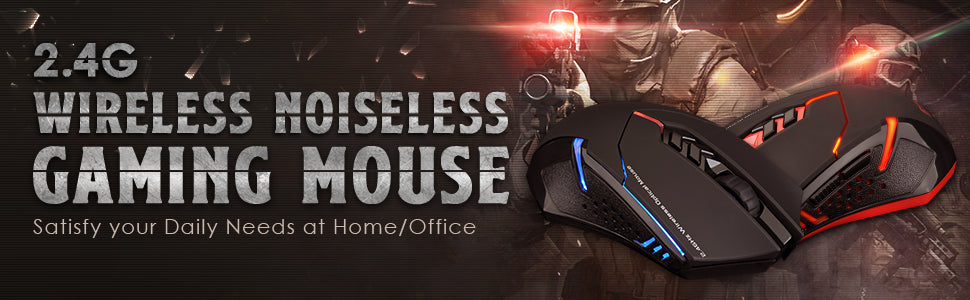 Wireless Gaming Mouse with Silent Click. quiet wireless gaming mouse produces less noise upon click, which keeps you focused and never disturb others in public places such as dormitories, offices, cafes and libraries.
