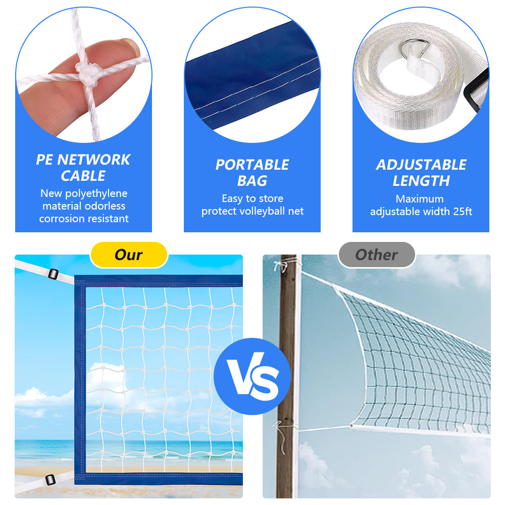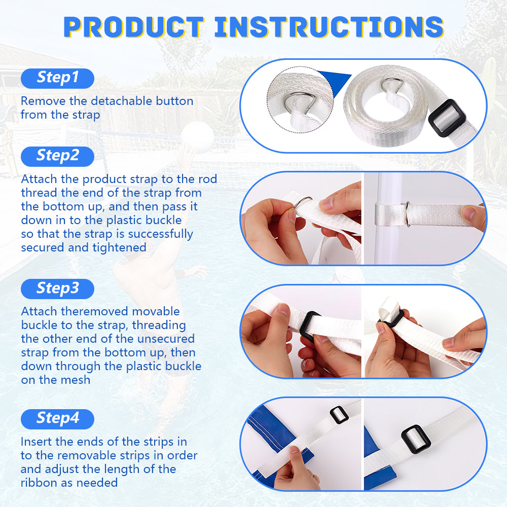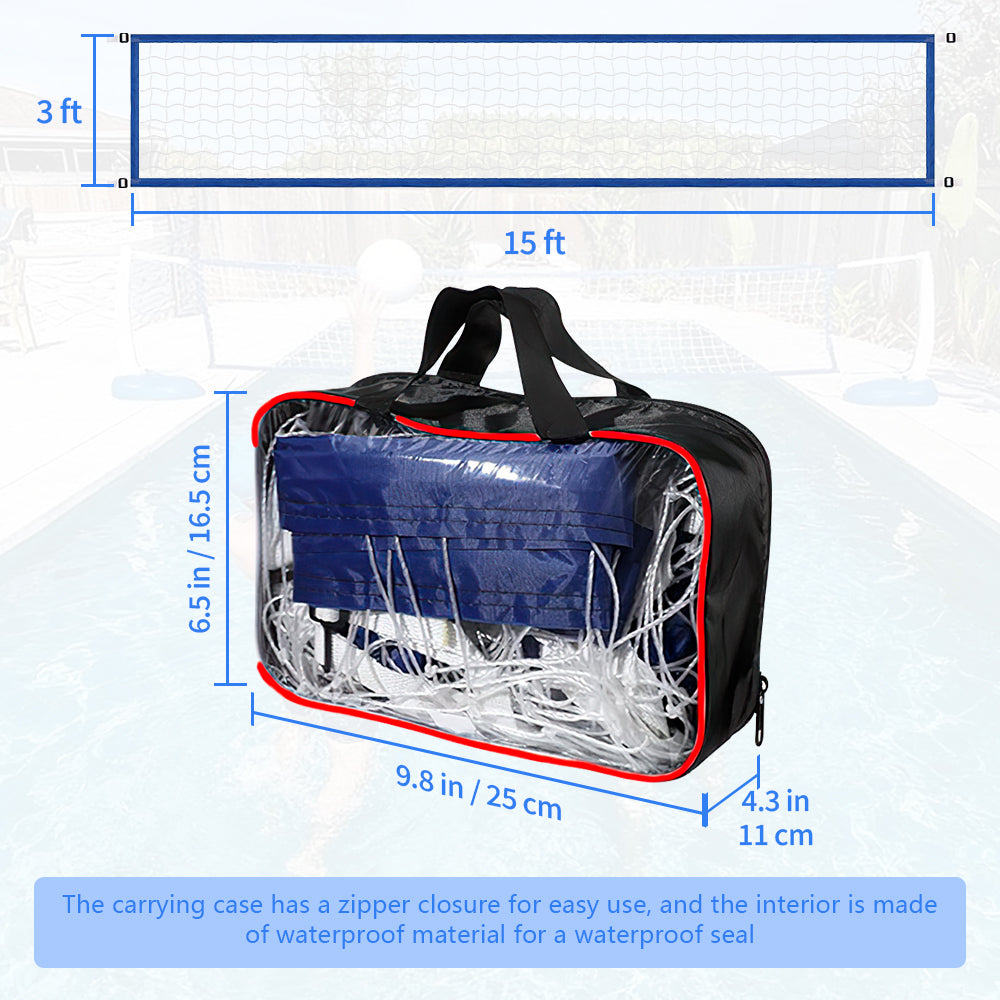 Adjustable Size for Versatility - Specifically designed for different volleyball courts, with an adjustable length of about 15-25 feet (4.5m) and a width of about 2.95 feet (0.9m). The standard and flexible size fits various indoor and outdoor pool sizes, providing maximum convenience for users.